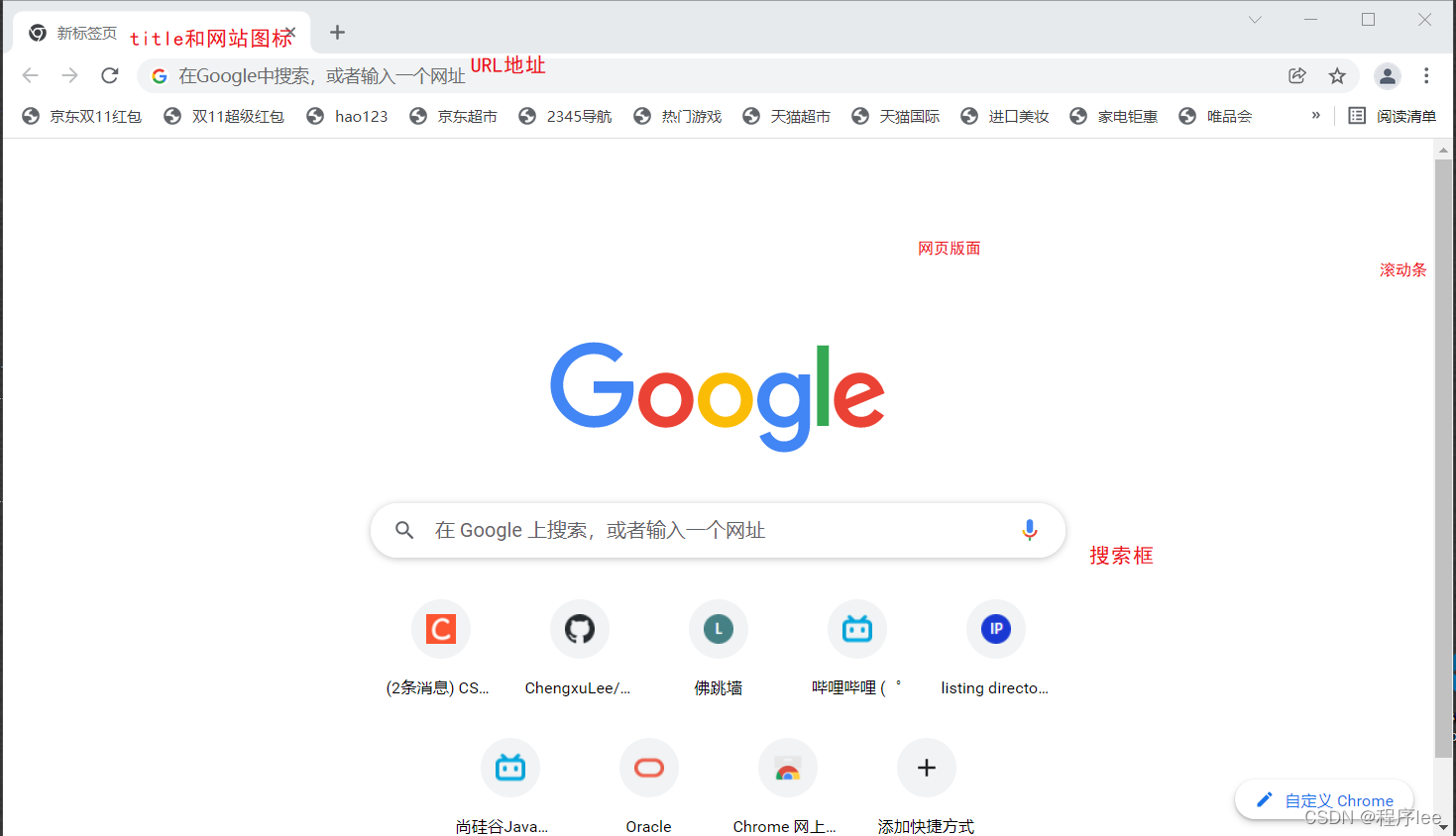 大多数的网页就由以下的几部分组成,这里面相对来说比较重要与我们前端比较相关的是title和网站图标的设置。还有就是URL(统一资源定位器)