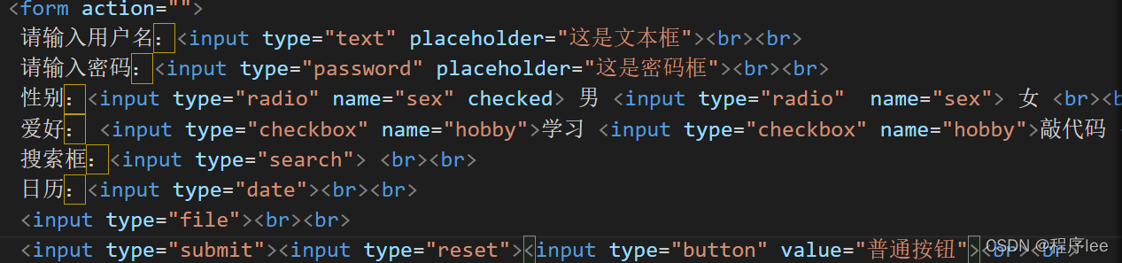 | text | 文本框 | placehoder 框中预设文字 |