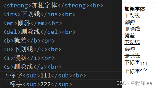 另外还有不太常用的下标字 sub 和上标字 sup等