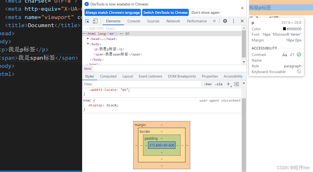 第二行是 <html lang="en"> </html> 与最后一行构成的双标签结构,在此区间内的所有内容便是网页的内容,lang=“en” 表示的是网页所使用的语言,en代表English ,如果想改成中文便是lang=“ZH-CN”。