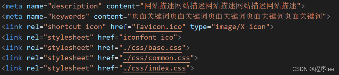 除此之外,我们一般还要link一些需要的文件如 网站图标 网站描述 CSS样式 字体图标等。