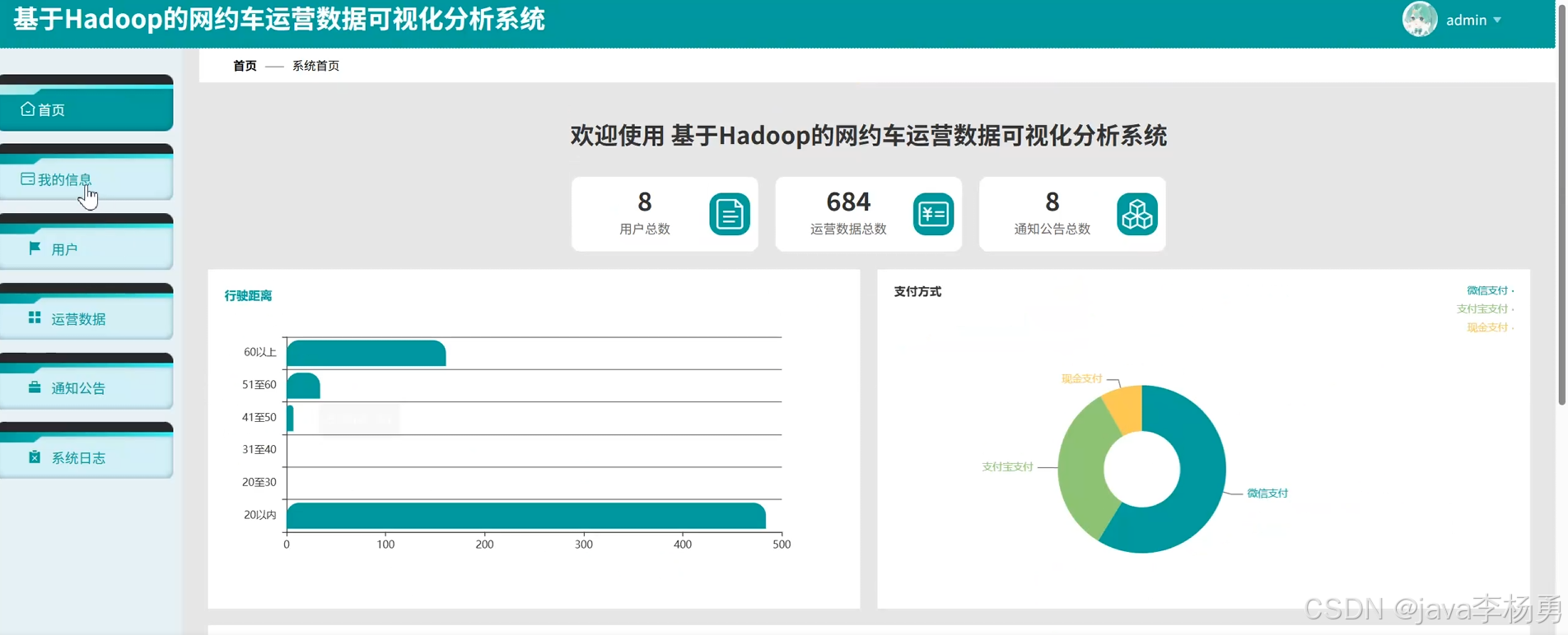 当前,行业普遍面临着诸多运营挑战:如何精准预测不同区域、不同时段的供需关系以缓解“潮汐式”运力紧张?如何优化派单策略以减少乘客等待时间和司机空驶成本?如何识别高频出行热点以指导市场推广和资源投放?回答这些问题,需要一种能够对海量运营数据进行高效存储、快速计算和深度挖掘的技术架构。以Hadoop为核心的分布式计算生态系统,以其高可靠性、高扩展性及高效处理能力,为存储与计算PB级别的网约车数据提供了理想的技术基础。结合SpringBoot的敏捷开发能力,可以快速构建起稳定、可扩展的后端服务。因此,设计和实现一个集大数据处理与智能可视化于一体的分析系统,已成为提升网约车平台精细化运营水平的迫切需求。