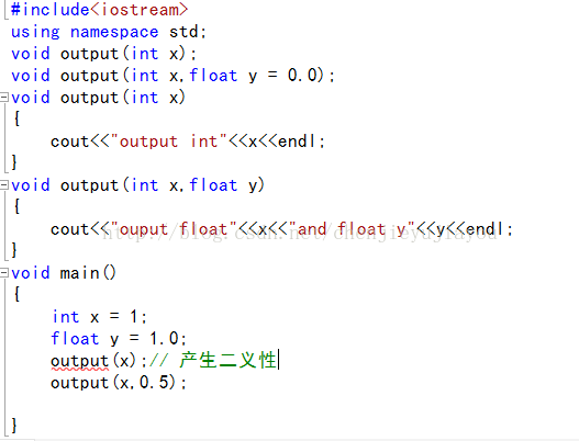 u 使用参数的缺省值并没有赋予函数新的功能,仅仅是为书写简洁,可能会提高函数的易用性,也可能会降低函数的可理解性,所以只能适当的使用函数的缺省值。不合理的使用参数的缺省值可能导致重载函数产生二义性。