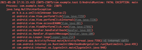 单凭这里的b.b.a.a.onClick(Unknow Srouce:2),似乎很难直接定位到错误代码的真实位置。