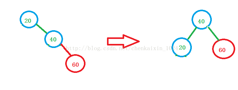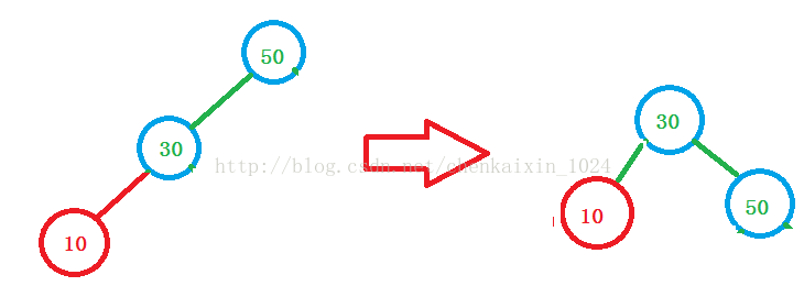 这里我们是将我们的子树的根节点的右孩子(也就是40对应的节点)作为旋转之后的根节点,而原来的根节点(也就是20所对应的节点)成为新的根节点(40)的左孩子,而原本(40)这个节点的左孩子成为(20)的右孩子。上述的情况之中,(10),(30)所对应的节点可能为NULL,但是处理方法还是一样的。无非就是可能会出现下面这种情况: