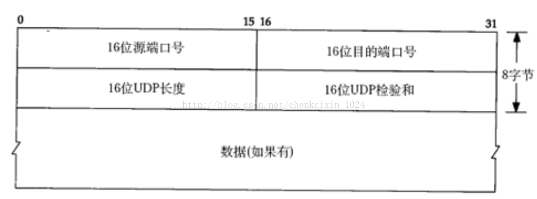 UDP的数据段格式很简单,它的报头是定长(因此UDP协议报头信息中无需加入报头长度的信息),其报头信息包括源端口号和目的端口号,UDP整个报文长度以及UDP检验和