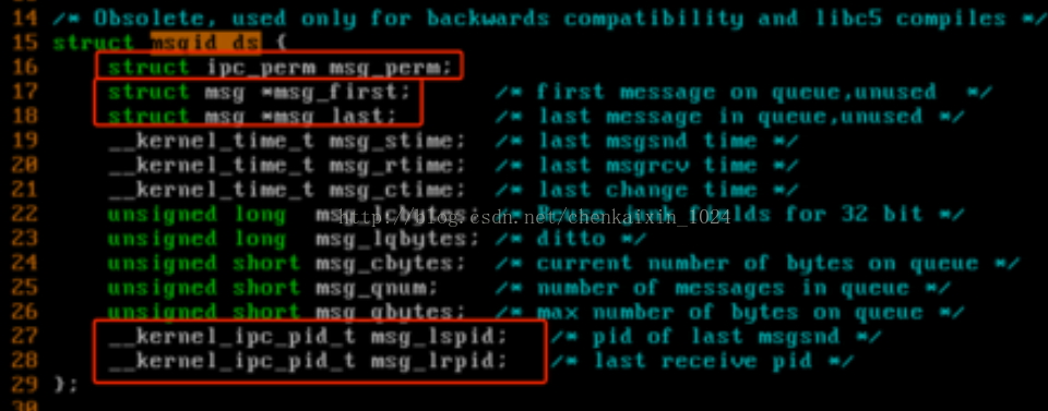 对于IPC的通信机制(包括消息队列,共享内存,信号量),内核都为其维护了一个IPC对象数据结构struct ipc_perm:
