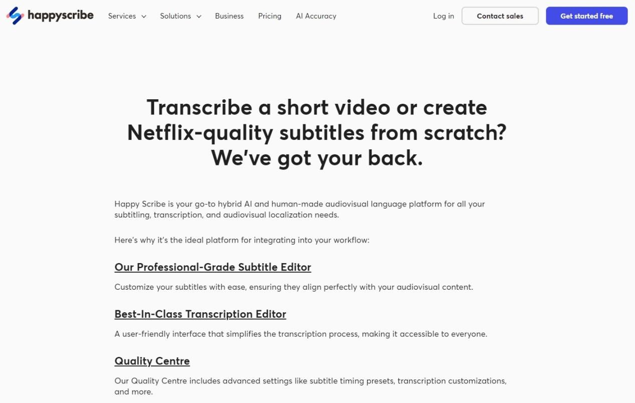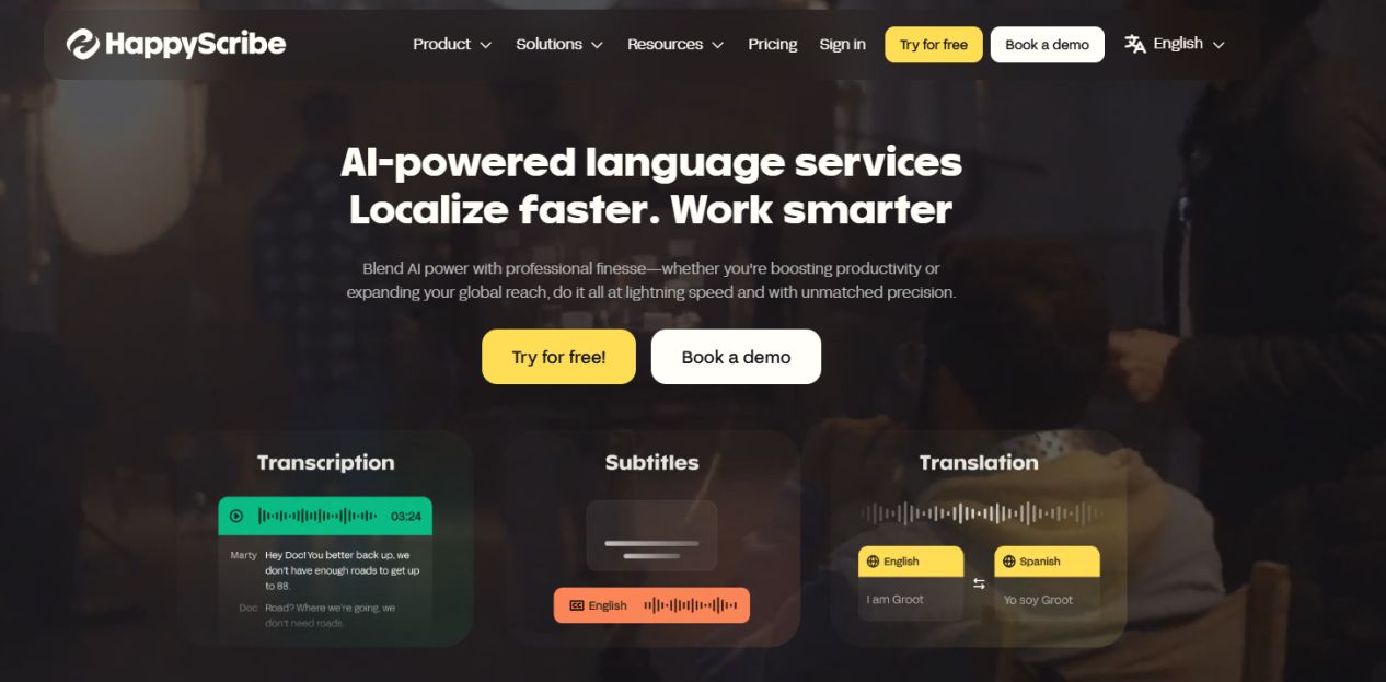 三、HappyScribe:多语言专业转录与字幕专家
