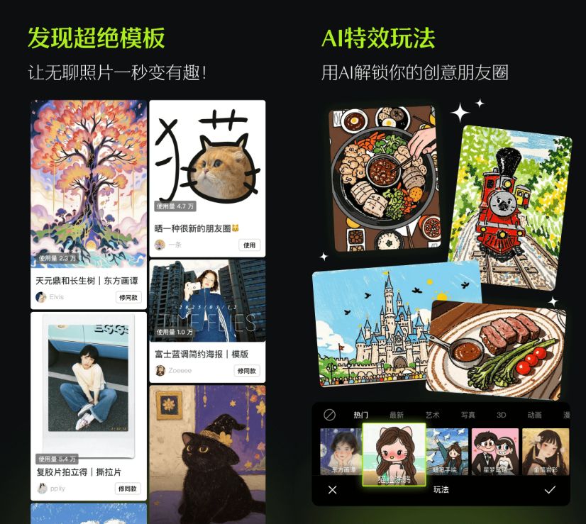 而且它操作超简单,选照片→选模板→调滤镜,5分钟搞定,手残党也能轻松出片!