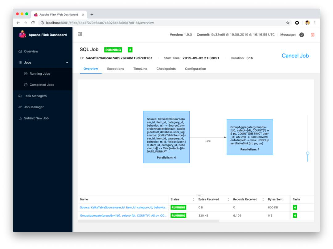 运行成功的话,可以在 http://localhost:8081 访问到 Flink Web UI。