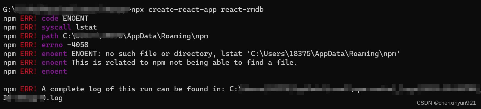 npx create-react-app报错ENOENT: no such file or directory, lstat.... npx create-react-app报错ENOENT: no such file or directory, lstat....