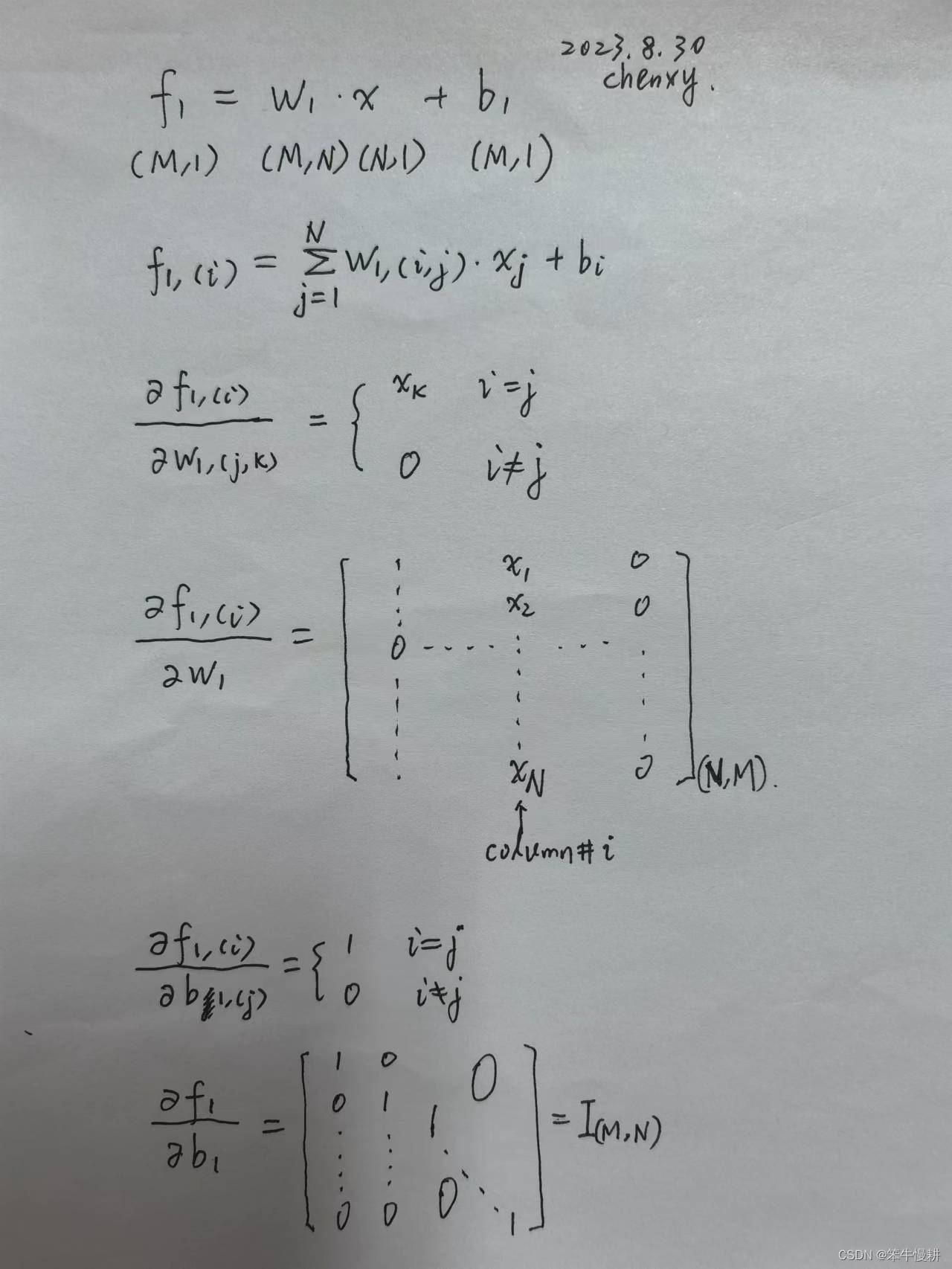 的梯度是一个shape=[M,N,M]的3阶张量!在纸面上很难写出3阶张量,所以以上只给出了