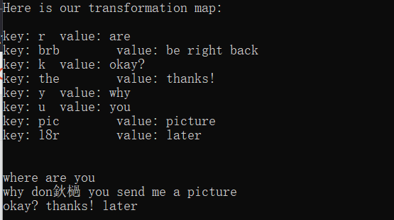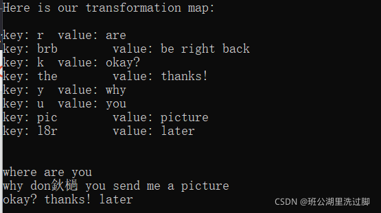 单词转换程序的修改类似。由于程序中不再有元素内容的顺序输出,因此输出结果与有序版本没有什么不同。