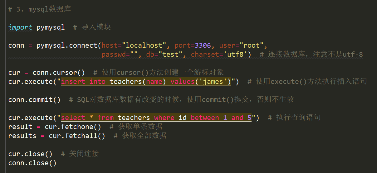 python3中可以使用pymysql模块,菜鸟教程python3操作mysql。
