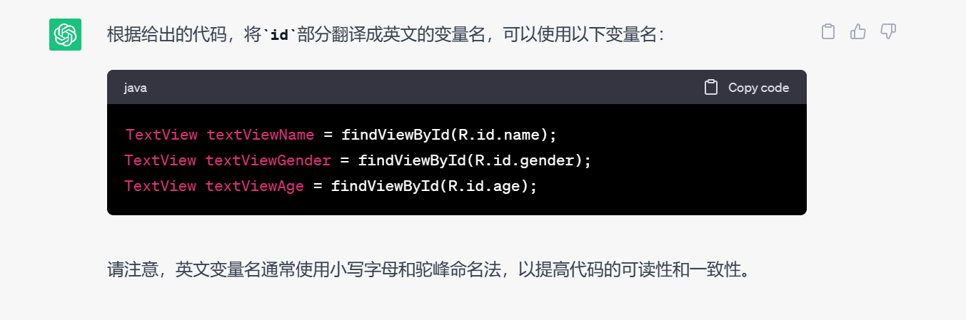 将LinearLayout及其内部的TextViewID进行英文翻译并优化,遵循下划线命名规范,便于代码阅读和维护。同时提到了使用ButterKnife库来实现XML布局的初始化,提高代码的简洁性。