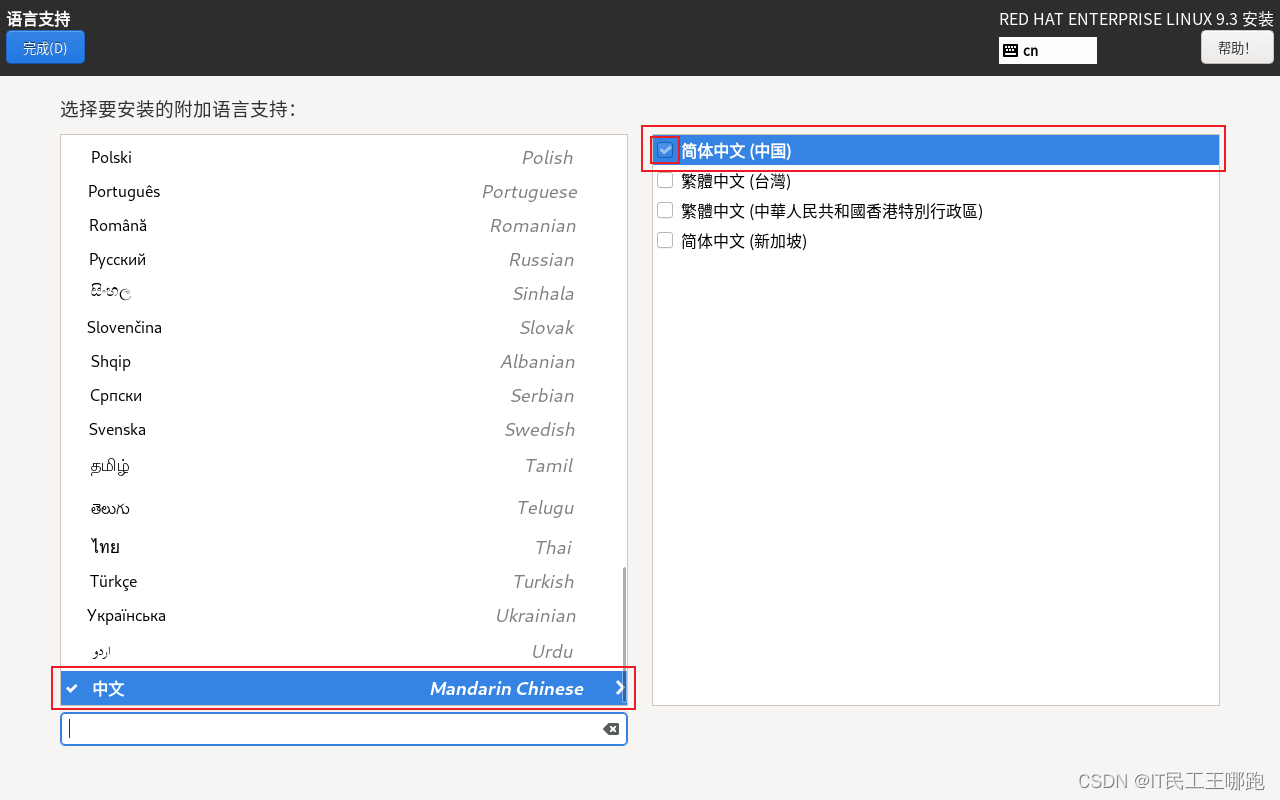这里要区分一下,当前选中的语言作为安装过程中安装器所使用的语言,这里我们选择中文简体。不过细心的同学可能发现,当你选择安装器语言之后,后续在配置操作系统语言支持项时,操作系统也会默认选择支持被选中的语言,这也契合了现在越来越多的业务对中文支持的要求。