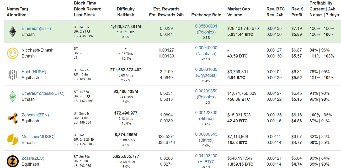 然后就会自动显示出所有能够用显卡挖矿的币种收益排序(大概二十种)