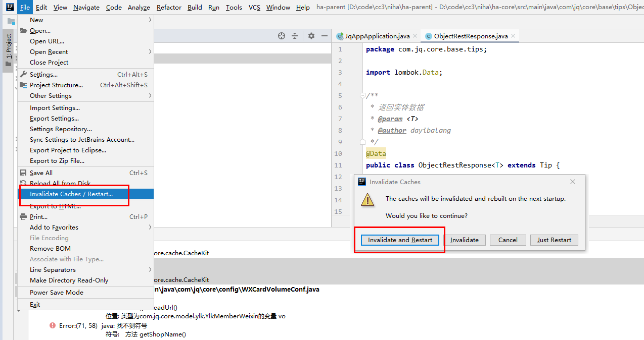 在想是不是还是编译器(idea)抽风,有缓存导致的?接着又清除了一下缓存重启。这里可能有小伙伴不知道如何清除缓存,我下面教一下大家。