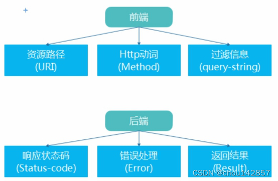 RESTFul设计风格 1、Rest与RestFulREST(英文:Representational State Transfer,简称REST),表述性状态转移,指的是一组架构原则。Restful: 遵守了rest 原则 的web服务或web应用。2、API设计六要素资源路径(URI)、HTTP动词(Method)、过滤信息(query-string)、状态码(Status-code)、错误信息(Error)、返回结果(Result)1)资源路径URI资源:所有在服务器保存的数据(如:音乐/视频/文章