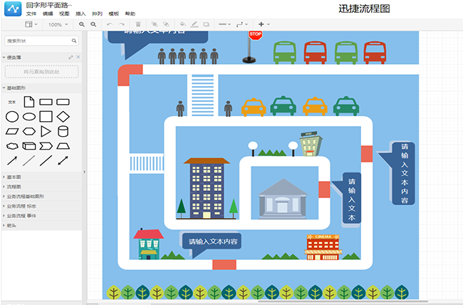 上面就是小编分享的回字形平面路线图模板,以及利用迅捷流程图在线版网站编辑模板的操作方法,需要的朋友可以参考上述方法进行操作,如果需要使用该模板的朋友可以点击下方链接进入在线编辑页面进行编辑。