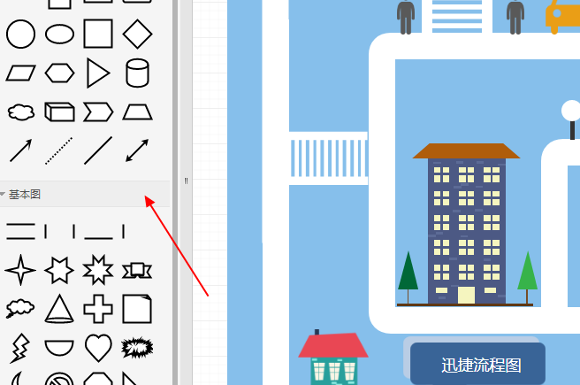 4.若是文本框不够使用地点较多的话,可以在看到左面有很多基础图像的框架,需要使用时直接拖拽图像至右面面板中即可。