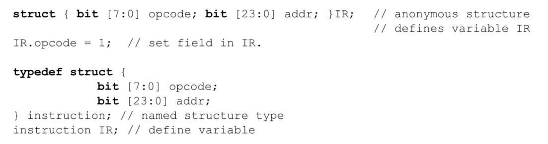 struct:类似C语言,变量或者常量的集合,可用于对信号分组,封装成总线等。