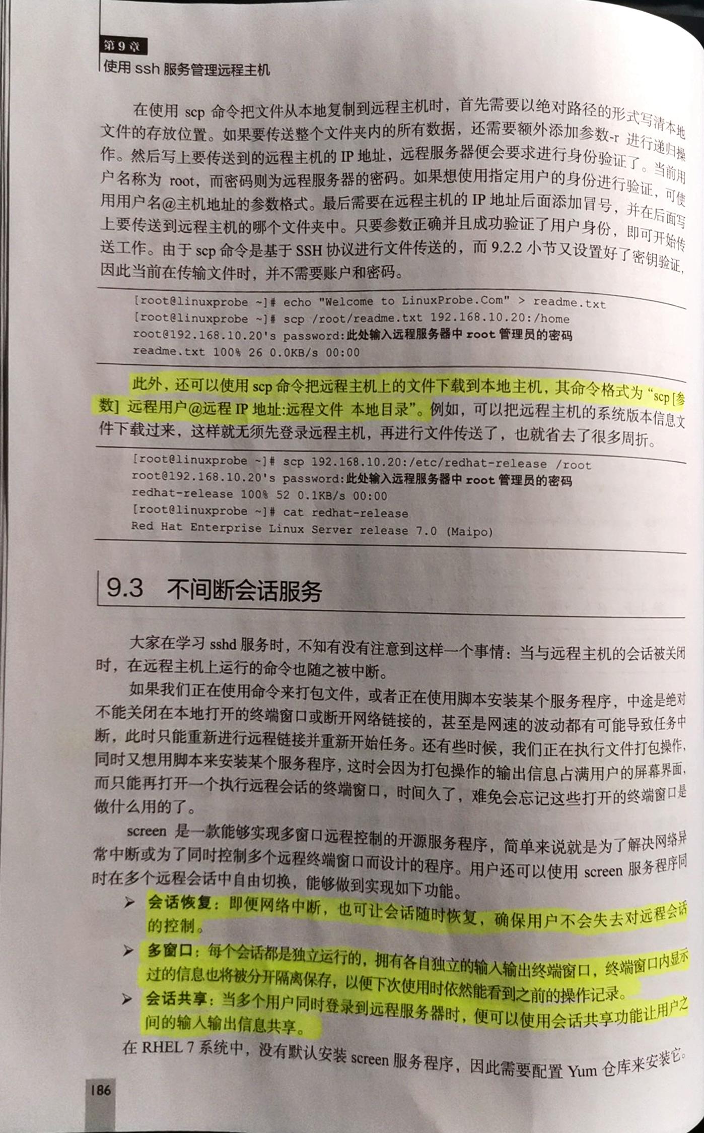 内容:配置网络服务、远程控制服务、不间断会话