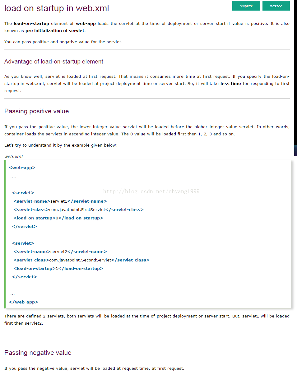- 当值小于0或者没有指定时,则表示容器在该servlet被选择时才会去加载。