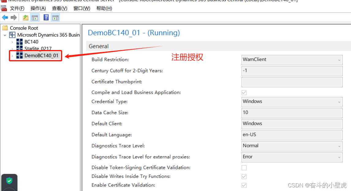 1.注册授权命令:Import-NAVServerLicense -ServerInstance DemoBC140_01 -LicenseFile "D:\StarliteWork\dev.flf"