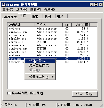 由于没有进程隐藏,所以我们可以轻易发现木马的进程。