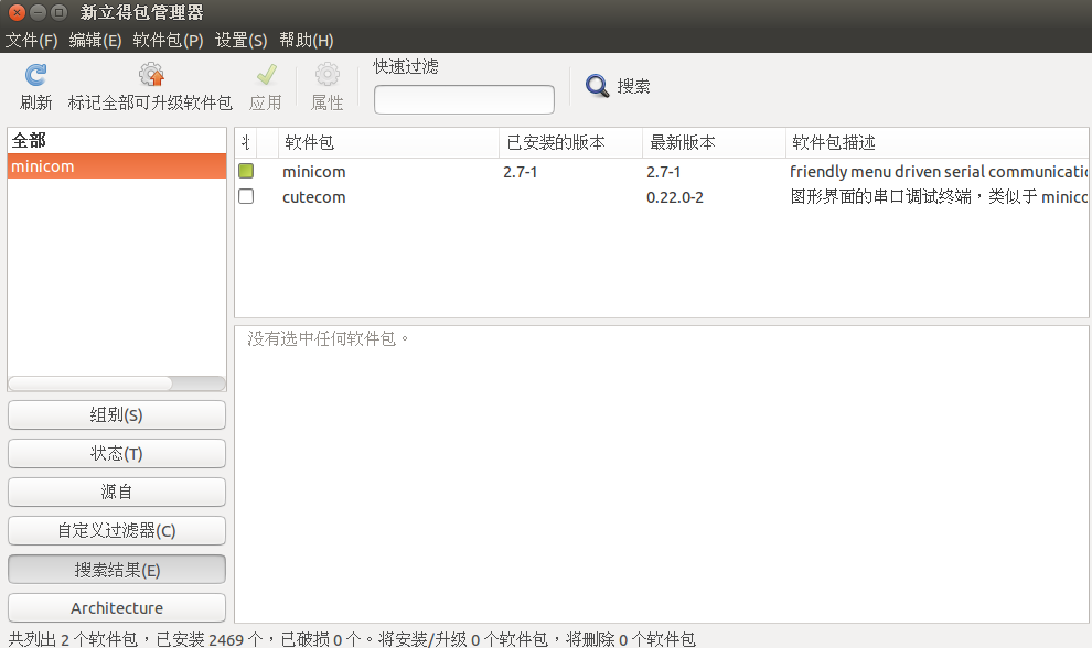 用新立得软件管理器下载minicom