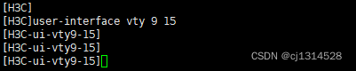 16.虚拟接口选择,配置同时满足几个用户登录,9 15 表示开放了9个接口:user-interface vty 9 15