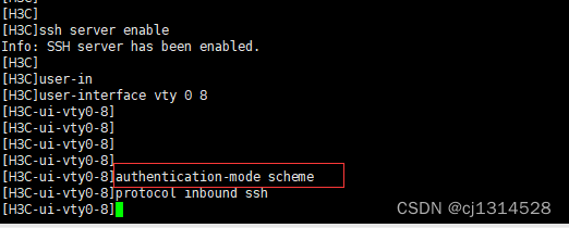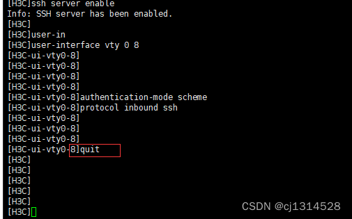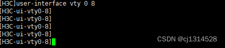 5.虚拟接口选择,配置同时满足几个用户登录,0 8 表示开放了9个接口:user-interface vty 0 8