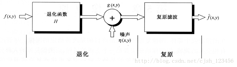 课本中的图像退化过程建模为一个退化函数和一个加性噪声。