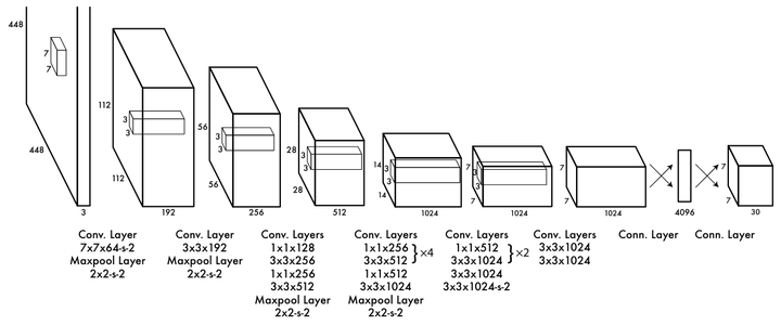 YOLOv1的网络结构,其实就是卷积特征提取,最后用2个全连接做回归和分类,那么中间那部分卷积特征提取是可以用ResNet或者VGG替代的