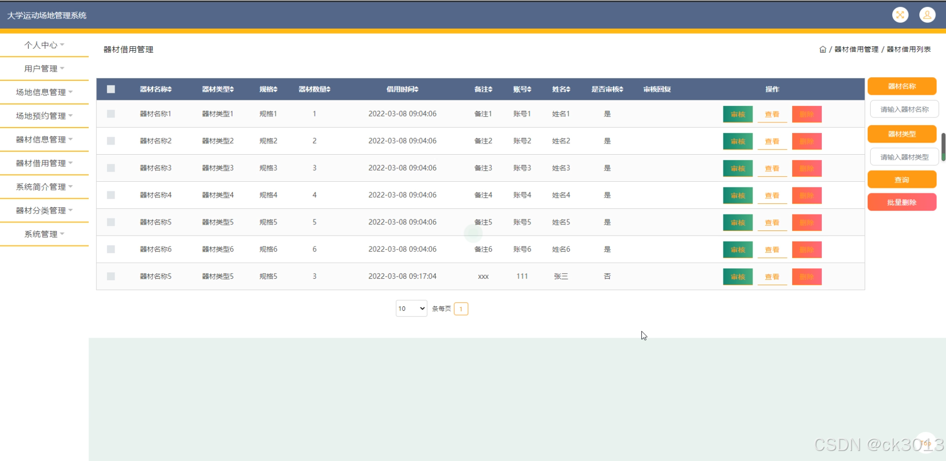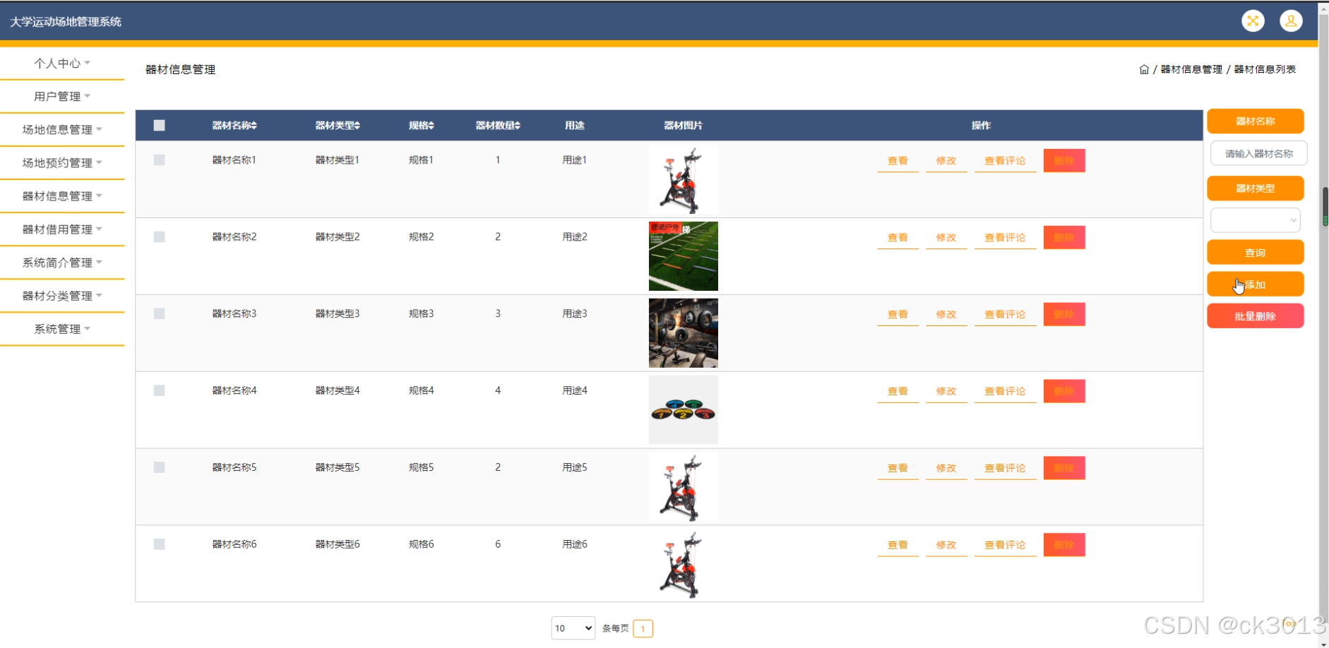 用户,场地信息,场地预约,器材信息,器材借用,系统简介,器材分类