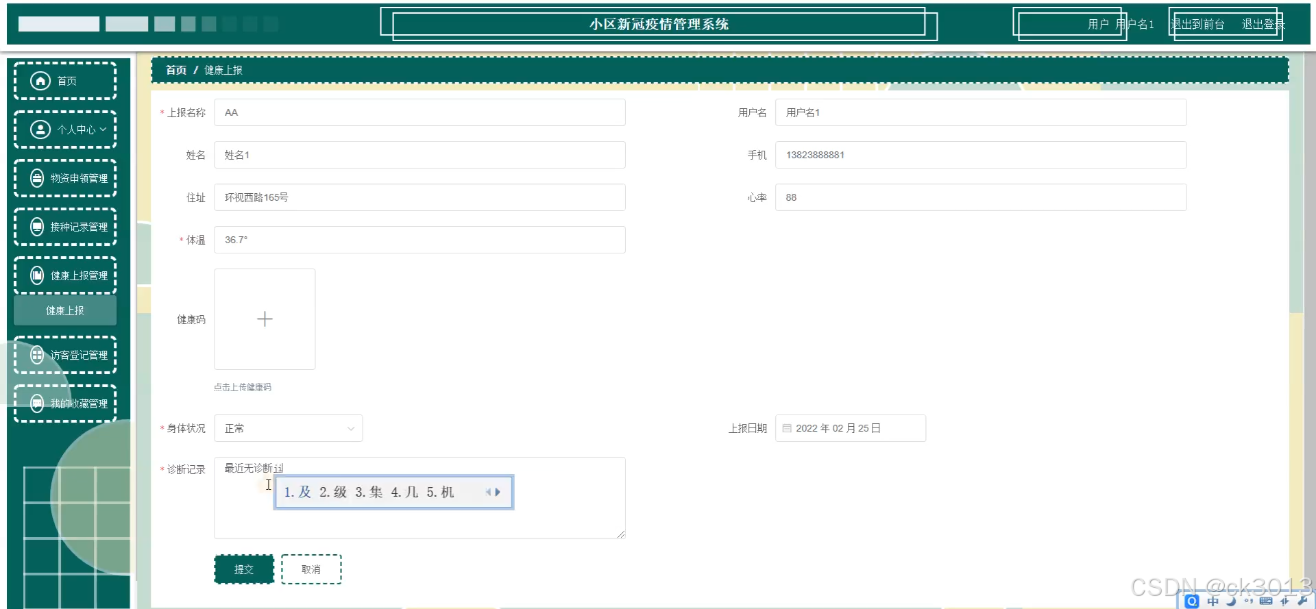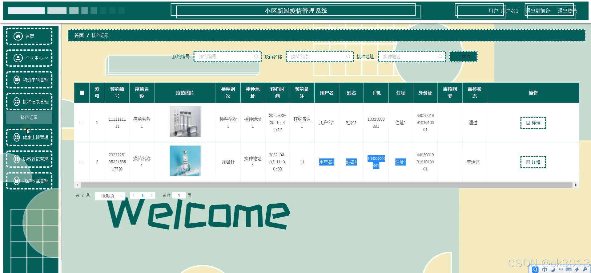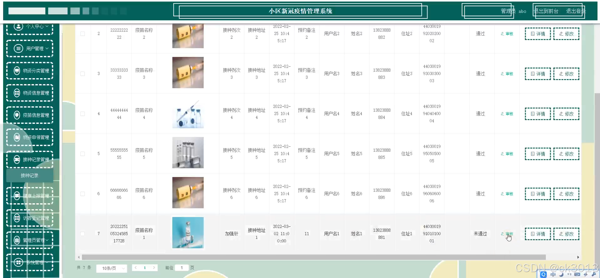 本项目旨在设计并实现一套全面、高效的小区新冠疫情管理系统,通过数字化手段整合小区内的各项防疫资源,实现疫情信息的快速收集、分析与反馈,为疫情防控提供有力支持。系统需具备用户管理、物资分类与信息管理、疫苗信息管理、物资申领、接种记录追踪、居民健康上报及访客登记等功能模块,实现小区内疫情防控工作的智能化、精细化管理。