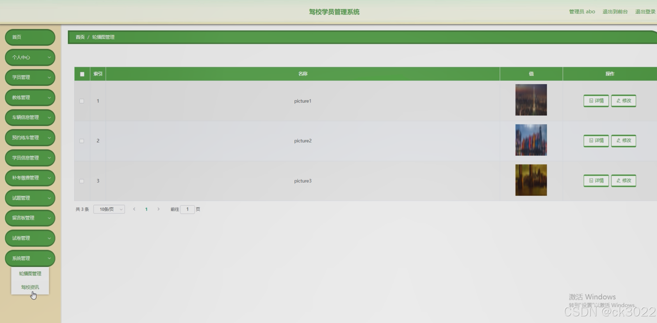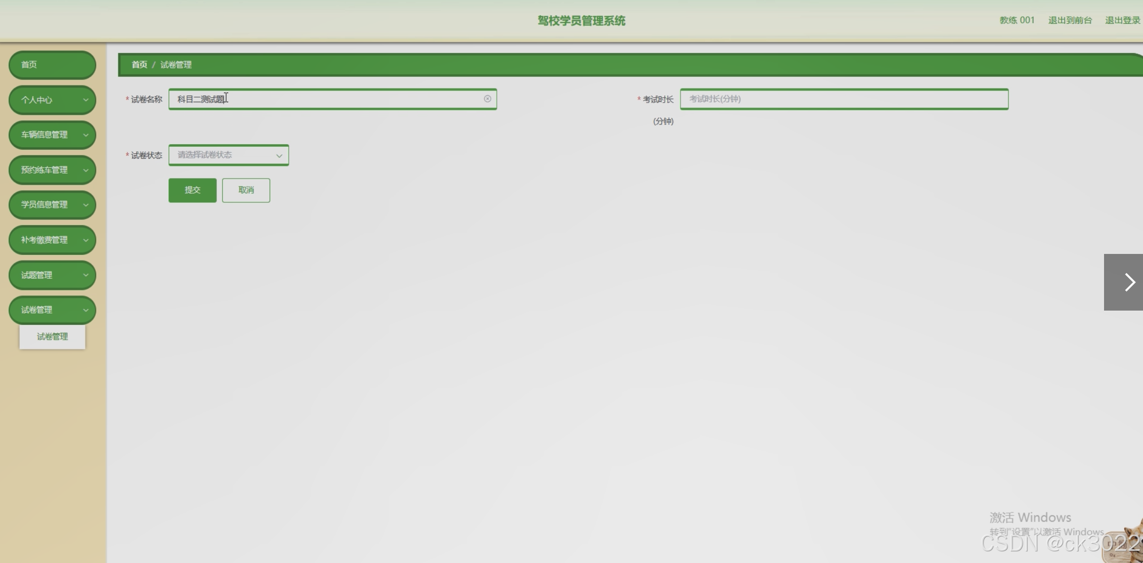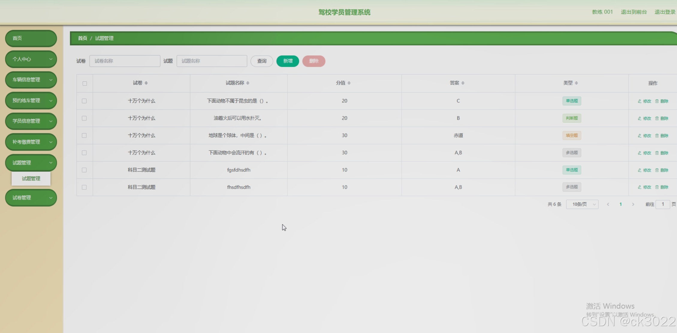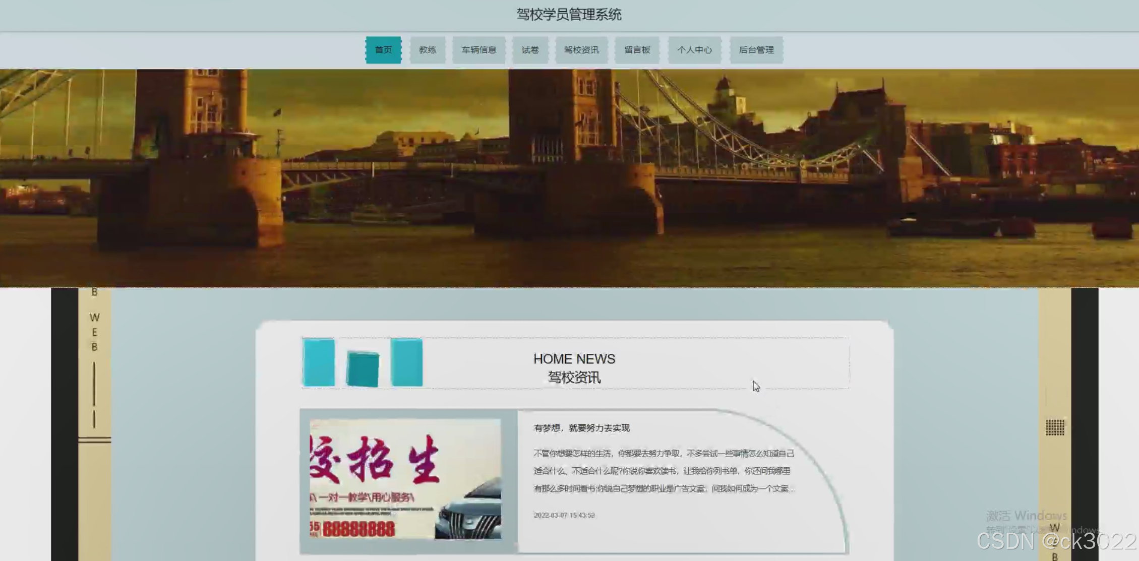 - 成功开发基于 Springboot 的驾校学员管理系统,实现驾校学员管理业务高效运行与学员便捷使用,显著提升驾校学员管理系统的运行效率与管理水平。为学员提供优质的学习管理平台,为教练创造良好的工作环境。