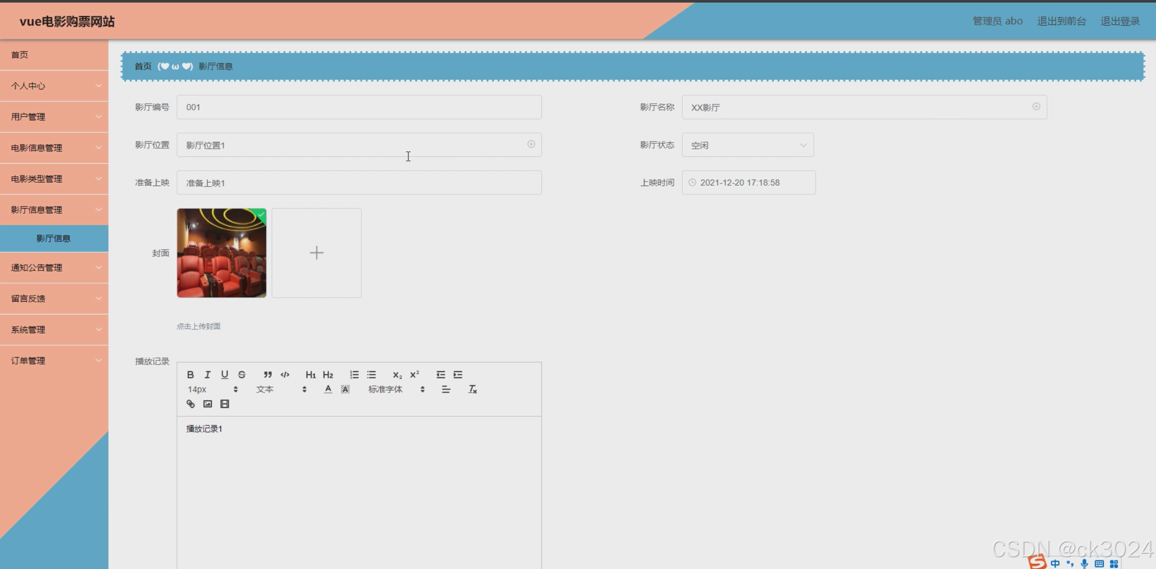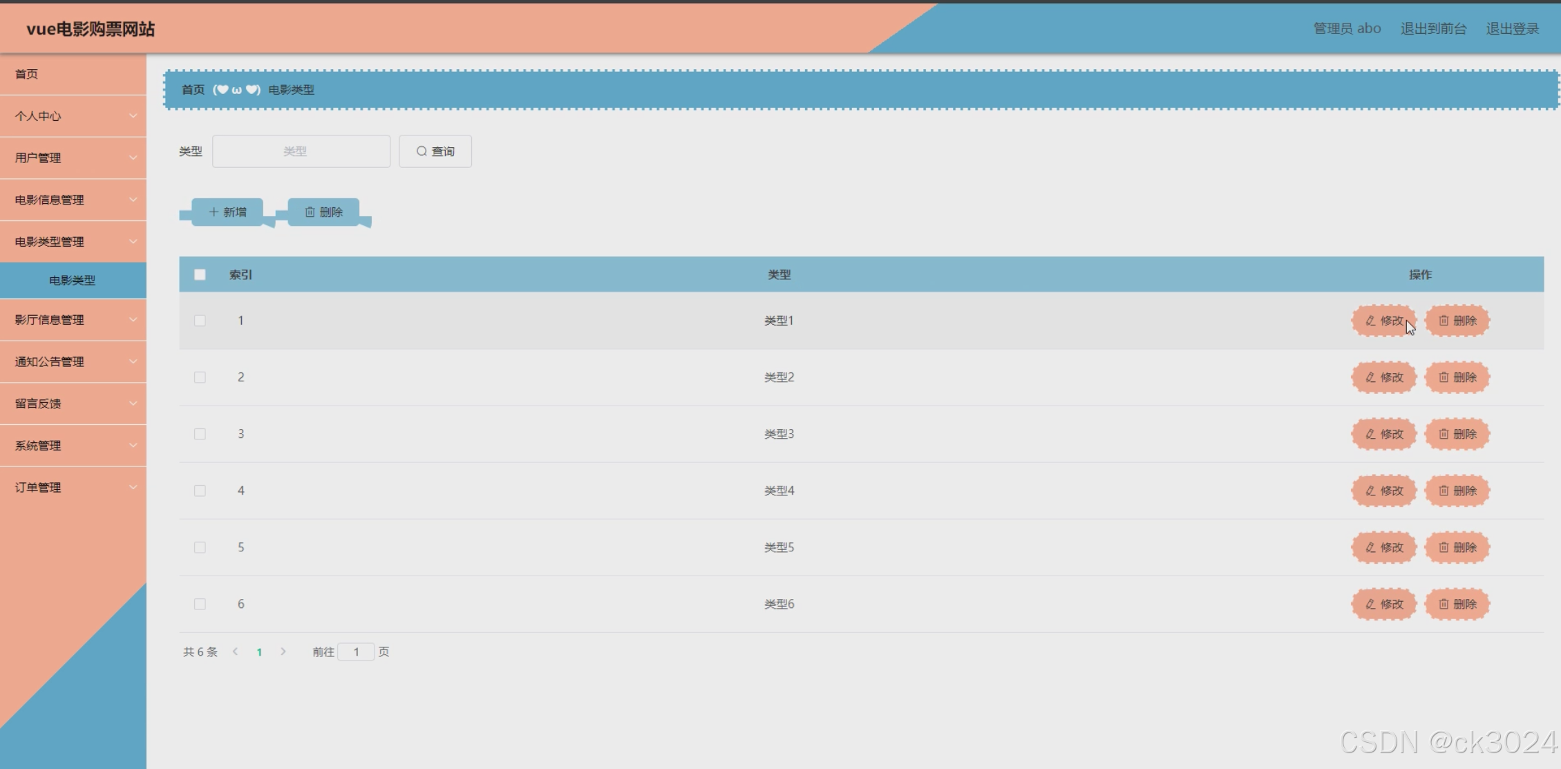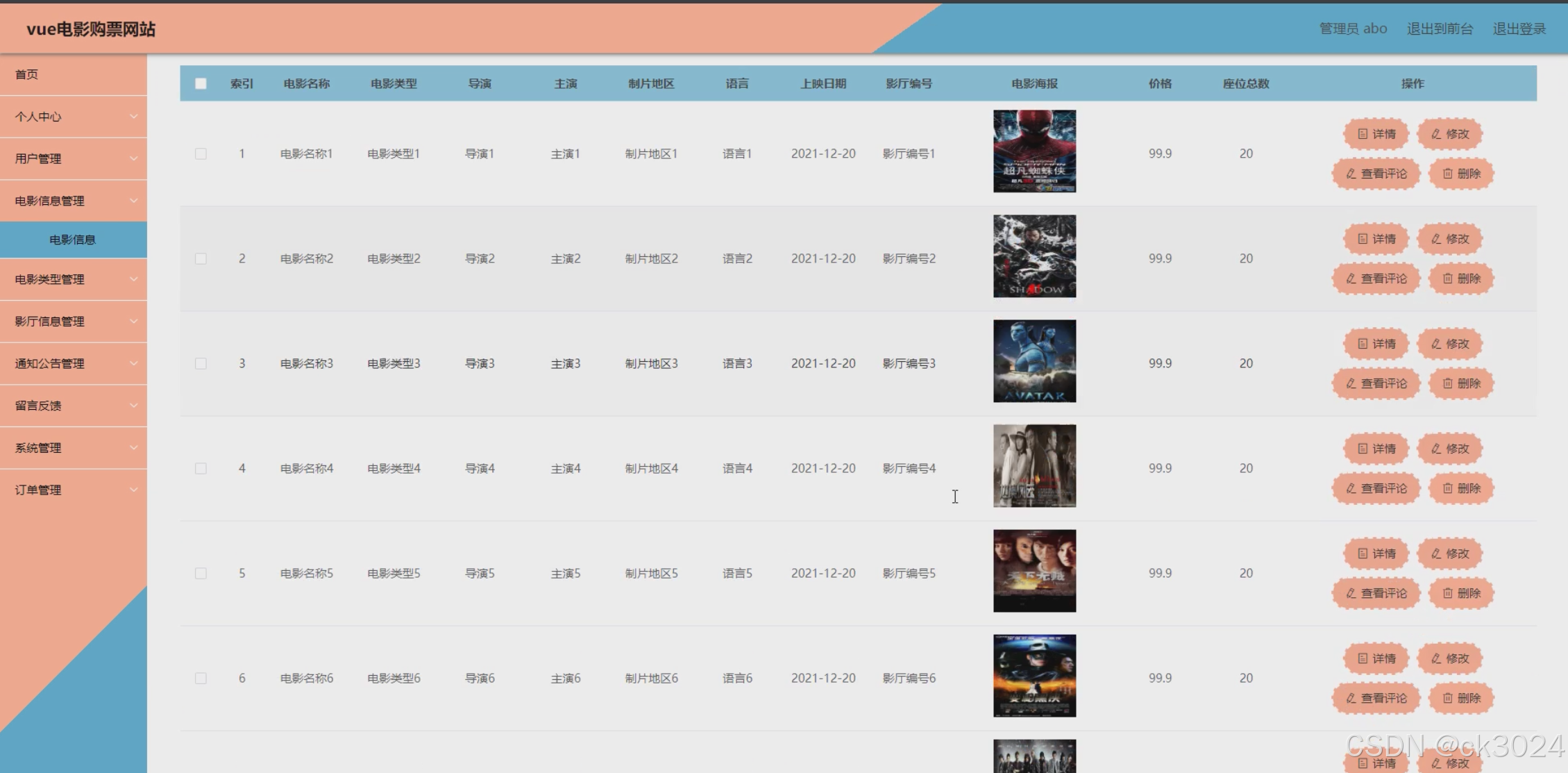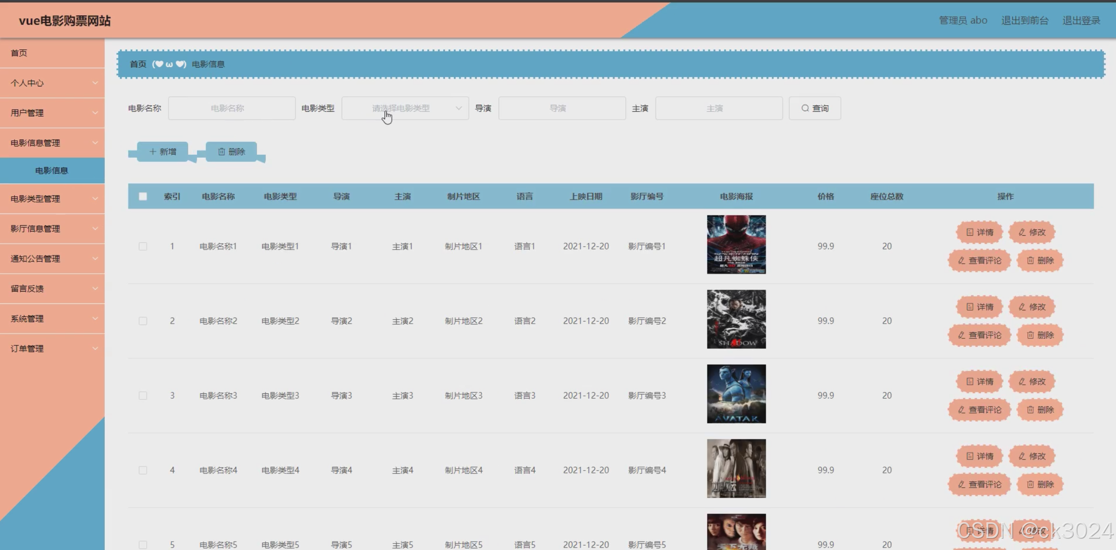 用户,电影信息,电影类型,影厅信息,通知公告,销售统计