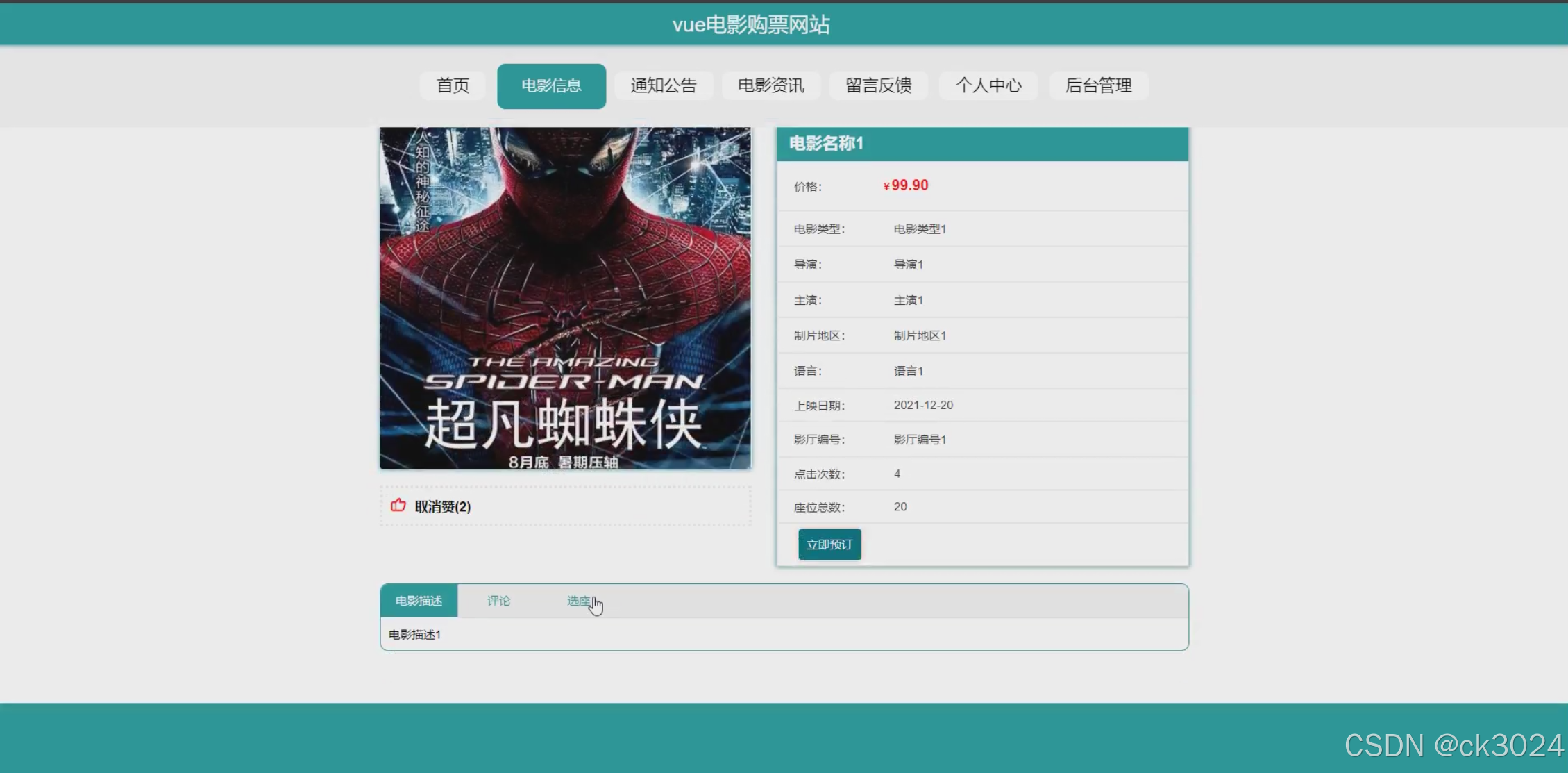 - 通知公告:发布最新的电影资讯、影院活动、优惠信息等,提高用户粘性。
