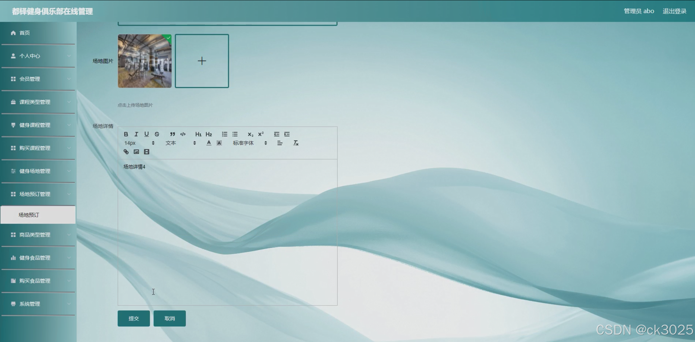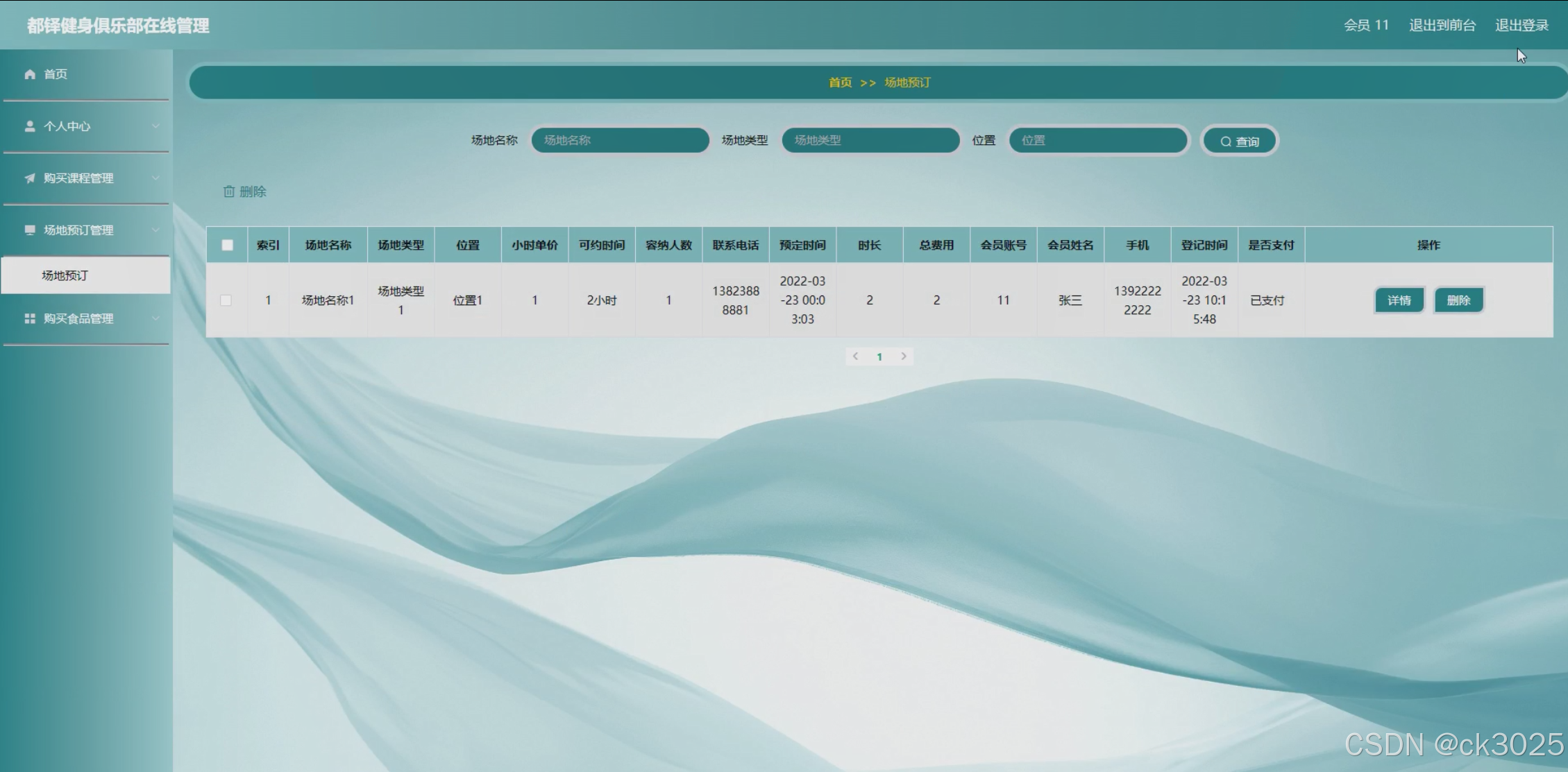 - 提供场地预订功能,会员可以在线选择时间段和场地类型进行预订。