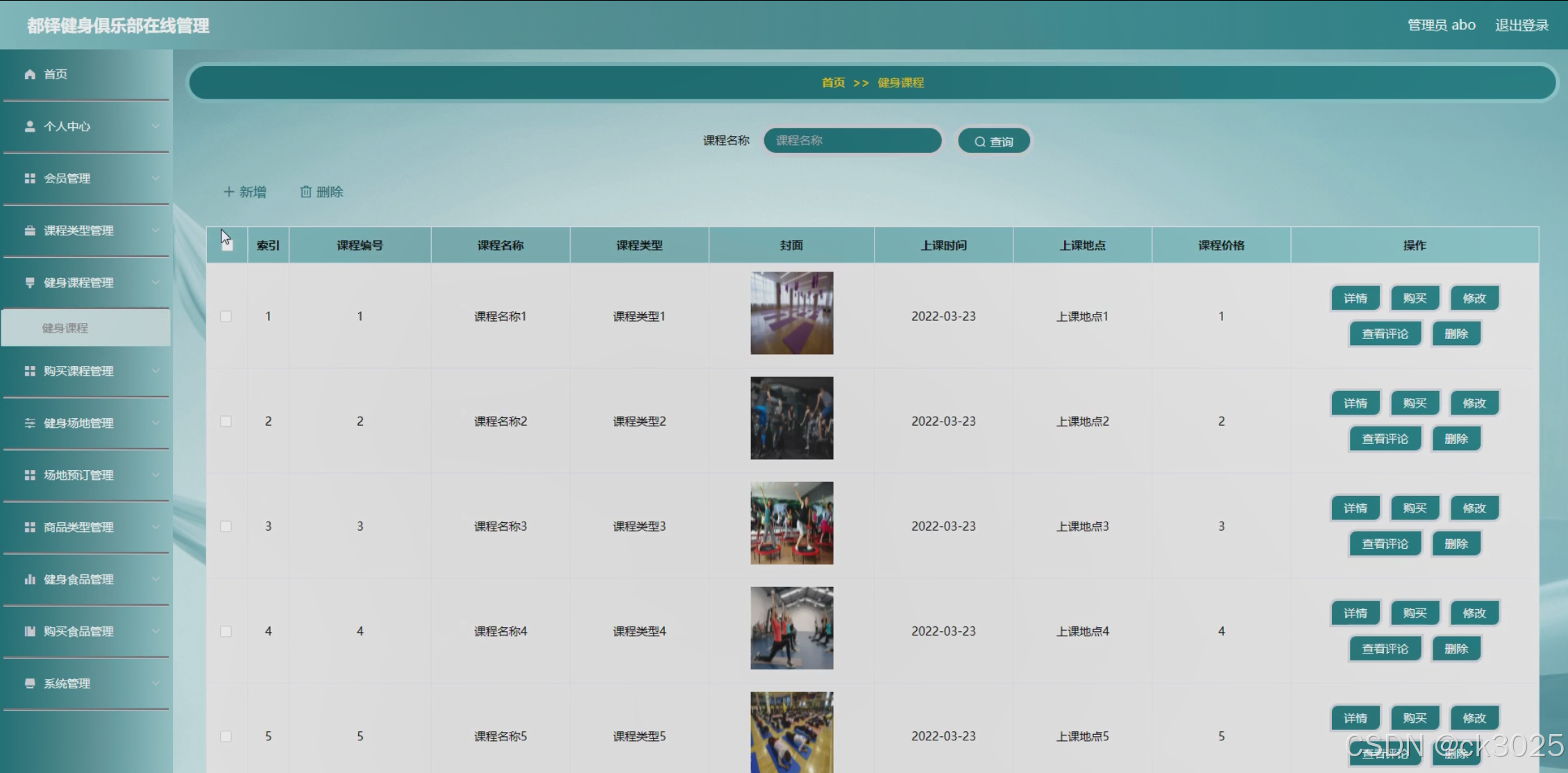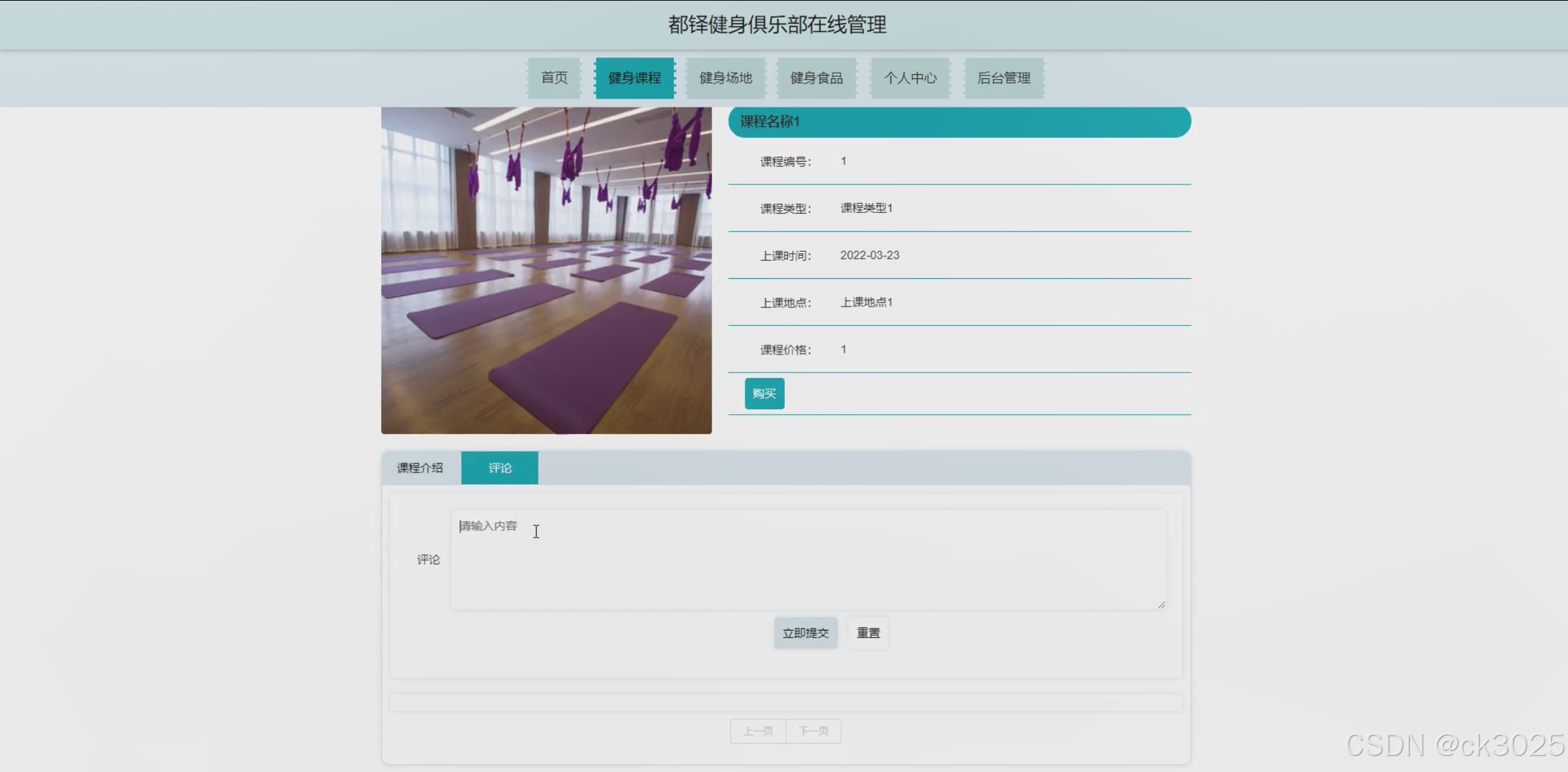 - 发布健身课程的相关信息,包括时间、地点、教练等。