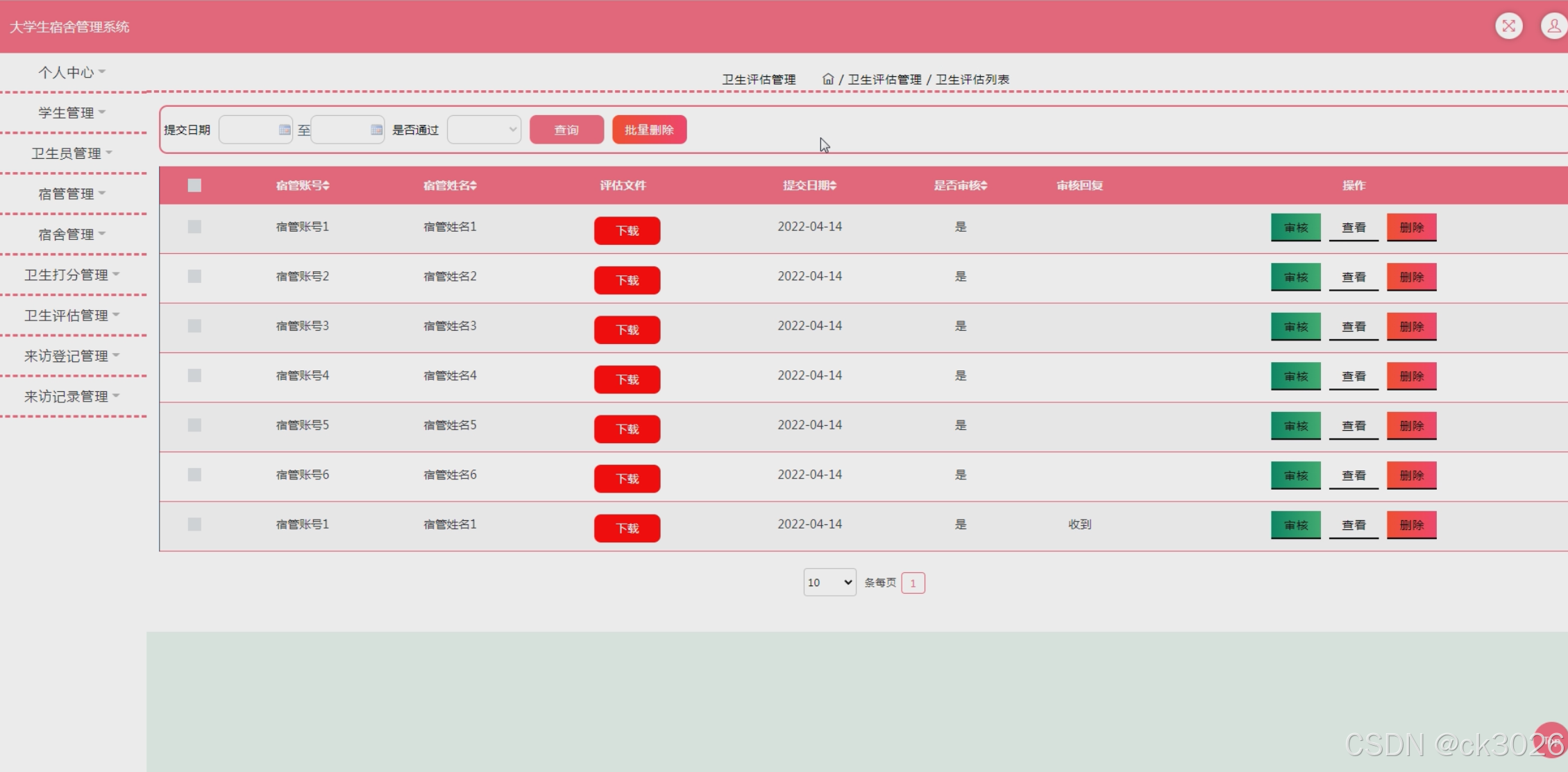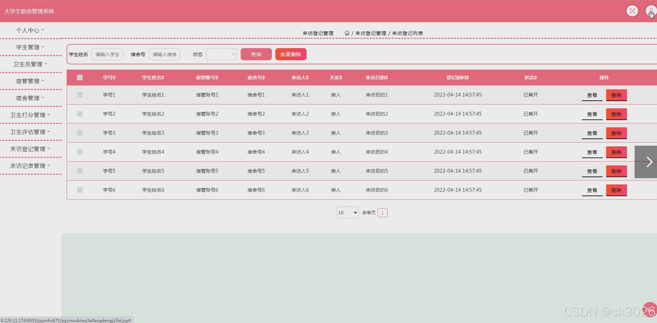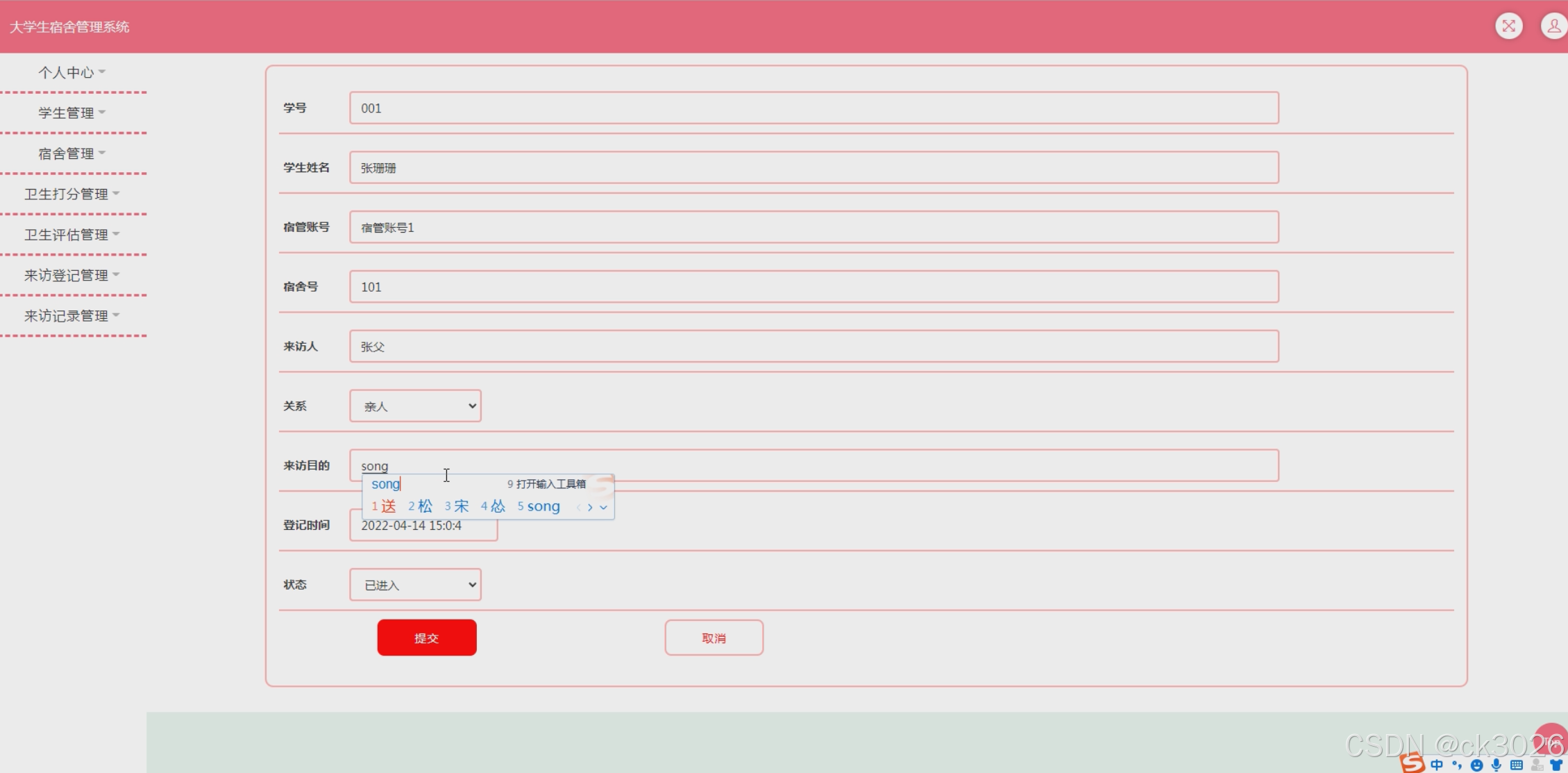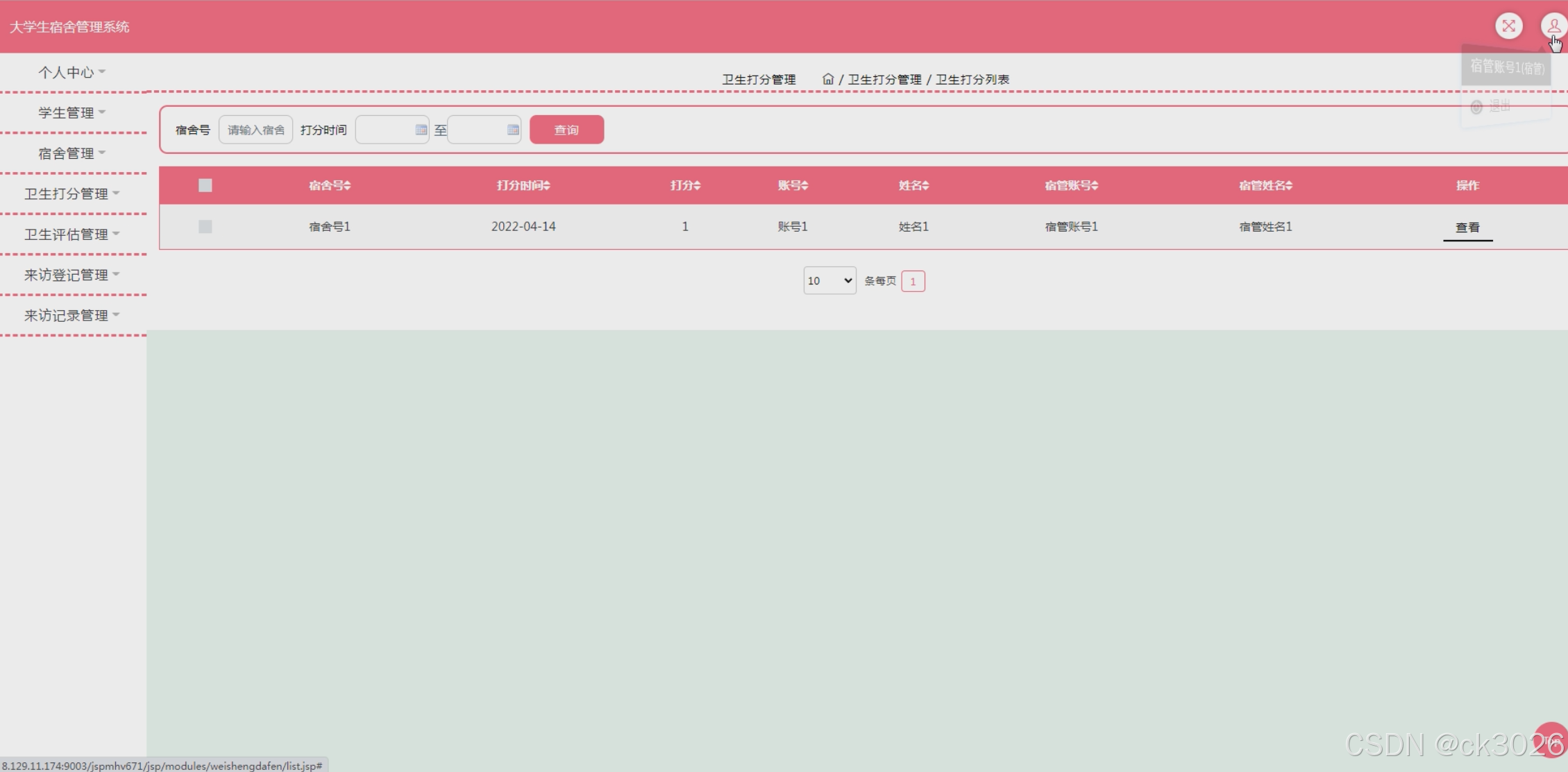 | 学生,宿管,宿舍楼,卫生打分,卫生评估,来访登记,来访记录,卫生员,缺勤记录 |