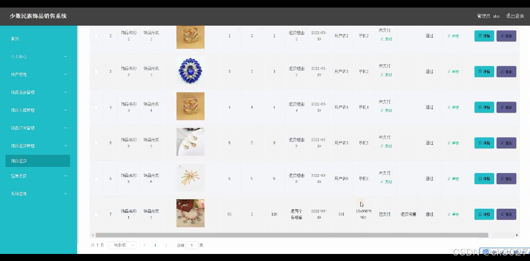 用户,饰品信息,饰品入库,饰品订单,饰品退货 |