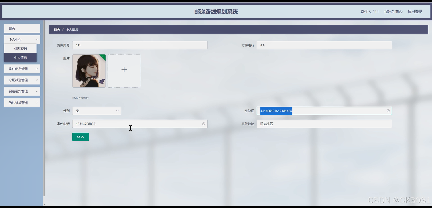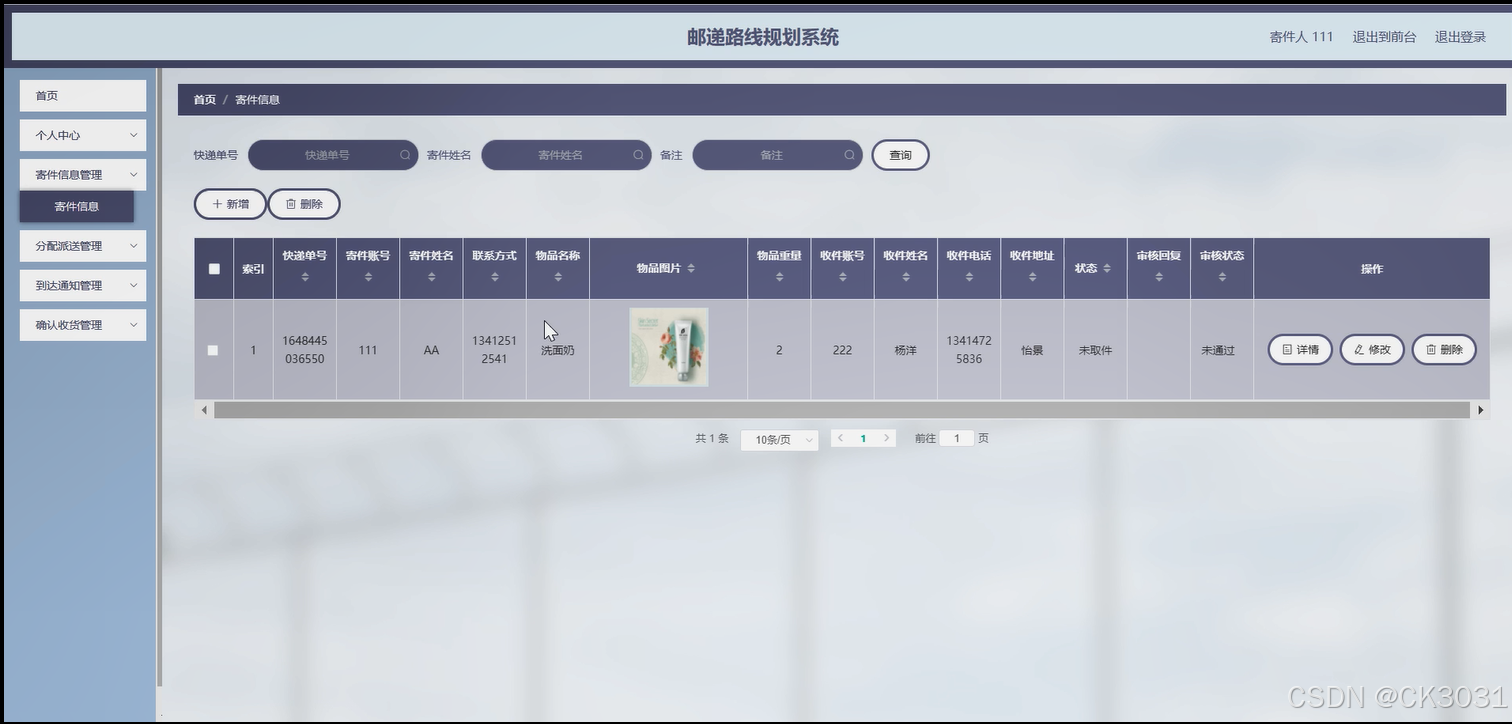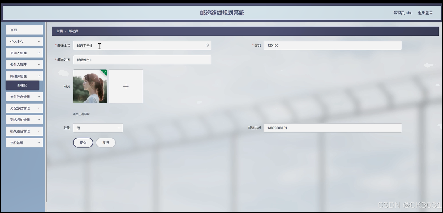 系统内容:寄件人,收件人,邮递员,寄件信息,分配派送,到达通知,确认收货