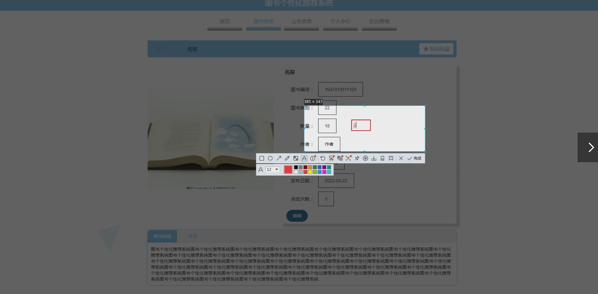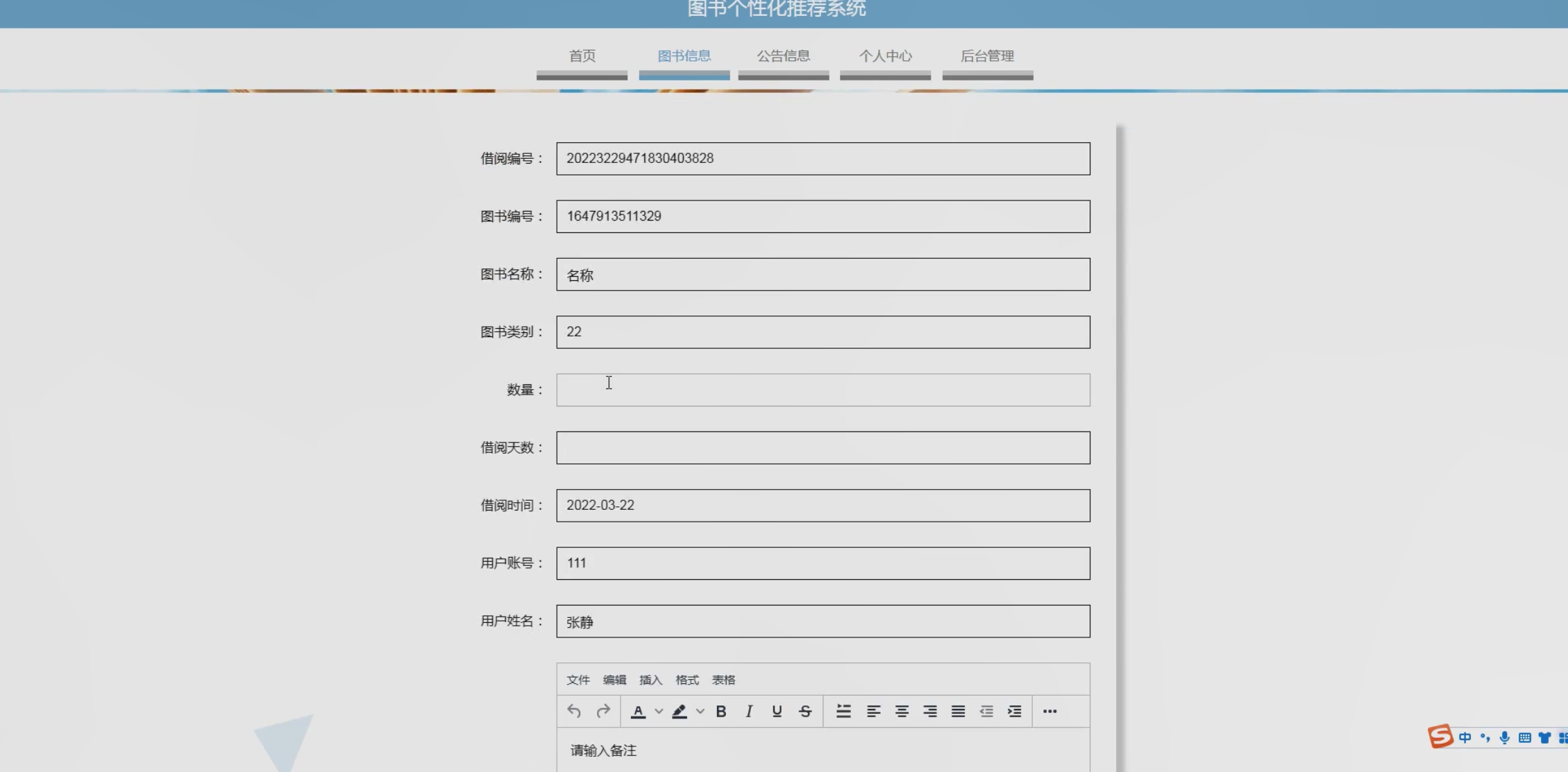 - 借阅与归还闭环:通过用户归还后的反馈(如评分、评论)优化推荐结果,形成数据迭代。