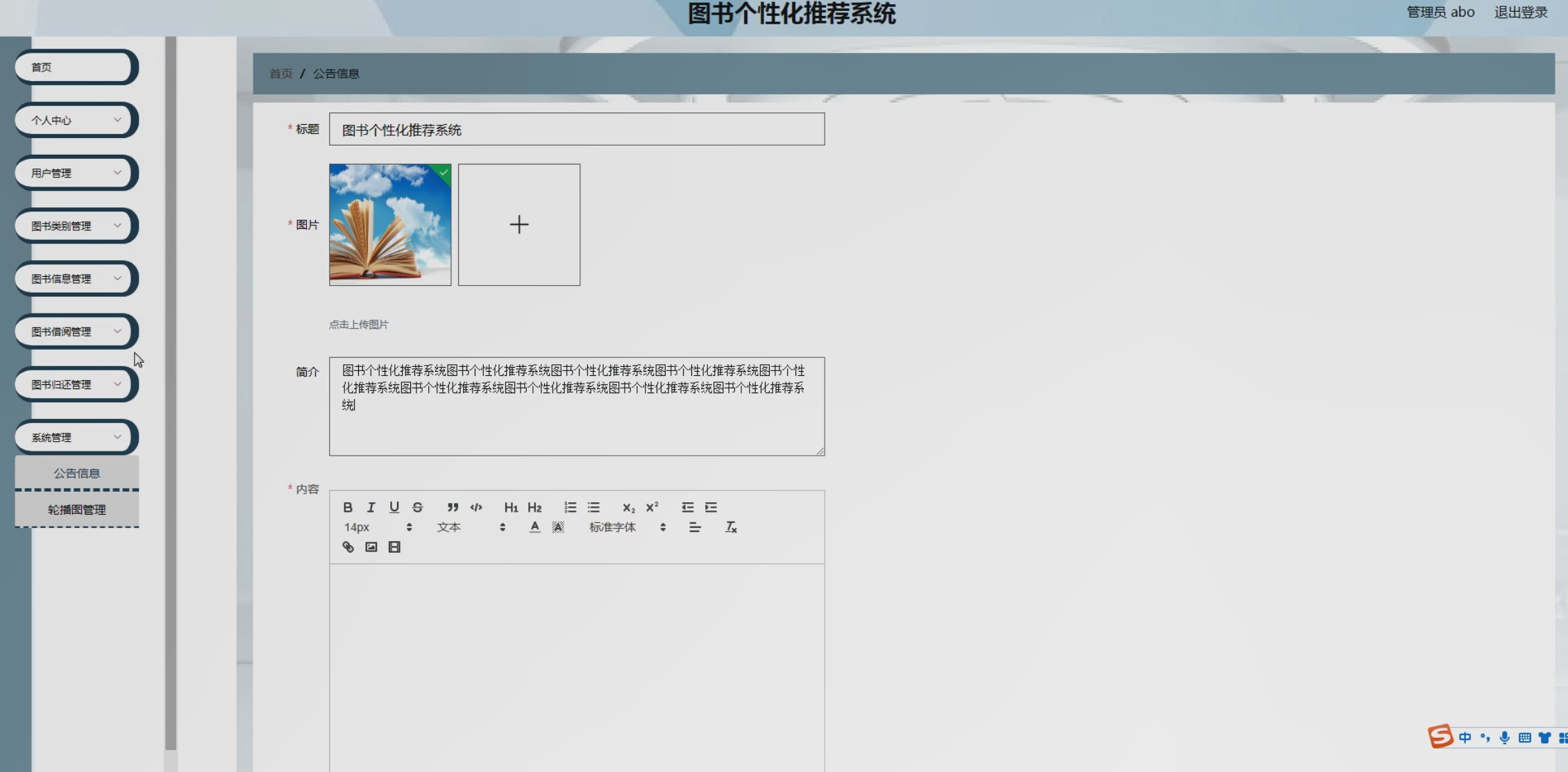- 推荐算法设计:结合协同过滤(基于用户/物品)与内容过滤(基于图书类别、关键词),解决冷启动问题。