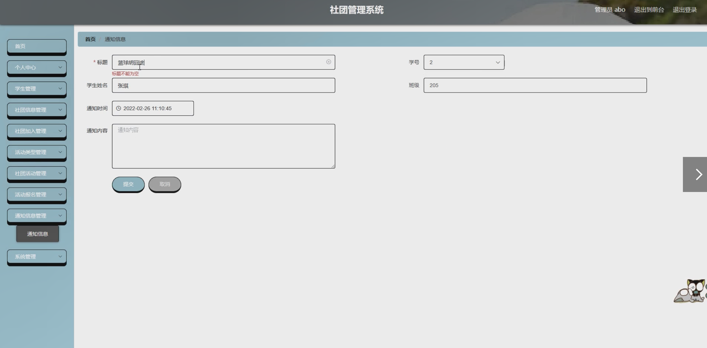 | 学生,社团信息,社团加入,活动类型,社团活动,活动报名,通知信息 |