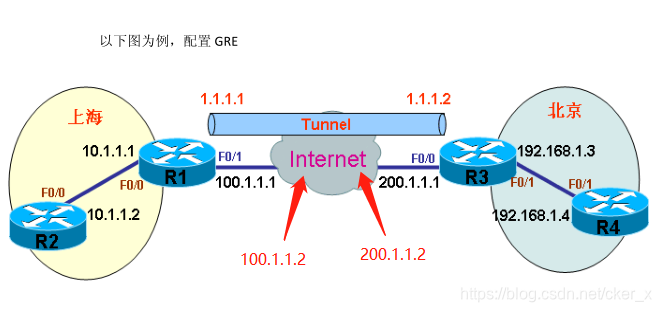 r1(config-if)#ip address 1.1.1.1 255.255.255.0 //隧道的接口地址是1.1.1.1