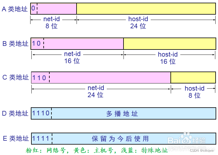 IP地址根据地址范围分为A到E五类,由下图可见其各类IP地址的主机地址范围: